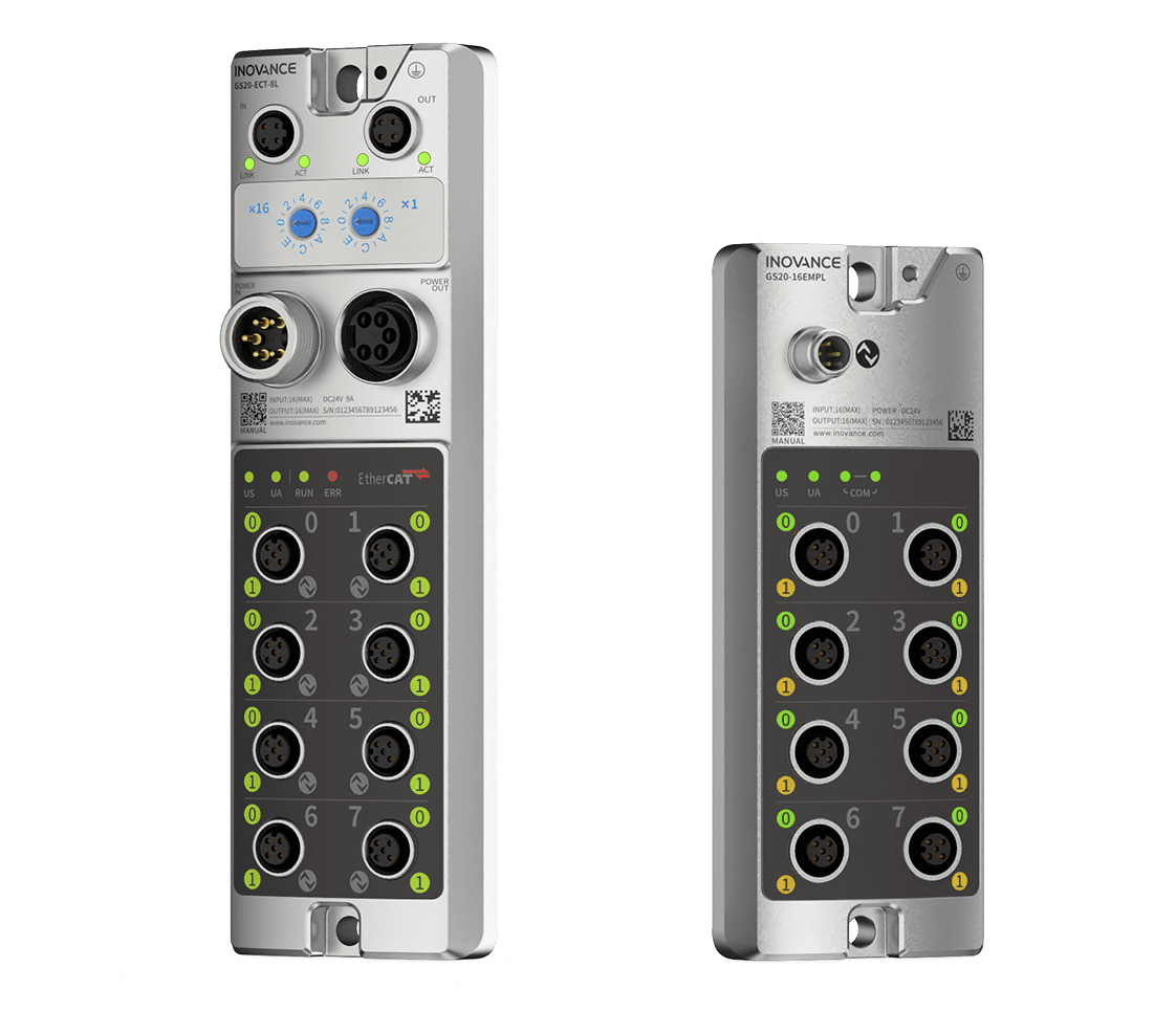 GS20系列产品是新一代高防护IO,其高达IP67的防护等级,可无需控制柜现场安装 他采用全球首个用于传感器和执行器与控制器通讯的标准化IO技术IO-Link,只需要一根三芯非屏蔽线即可完成接线,节省50%接线、维护时间,配置参数自动下发状态监视等功能助力客户节省维护成本,缩短停机时间,提高换产效率, 同时,采用结构紧凑的工业级金属全密封设计,适用于恶劣的工况环境,具有很强的抗振动和抗冲击能力,广泛应用于硅晶、锂电、医药、汽车、物流、冶金等行业,可直达现场层,助力其高效工程。
